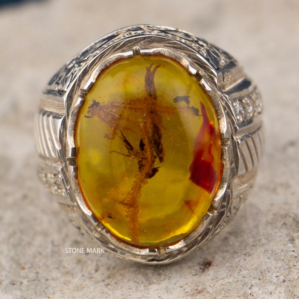 الحجر: تراب كهرمان مرصع 8 قطع موزانايت مع حشرة داخل الحجرعيار الفضة: 980المقاس: 19 عربي - 9 أمريكيالصائغ: الشريف LUXوزن الخاتم: 19 جرام
