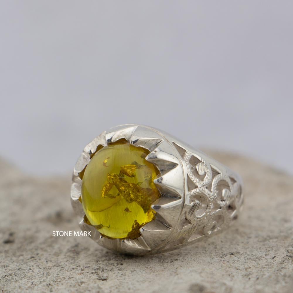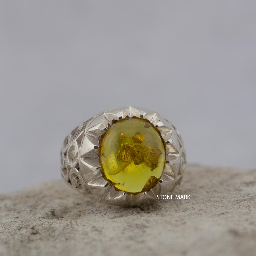 الحجر: كهرمان محشر بورق الذهبعيار الفضة: 925المقاس: 19 عربي - 9 أمريكيالصائغ: الشريفوزن الخاتم: 15 جرام