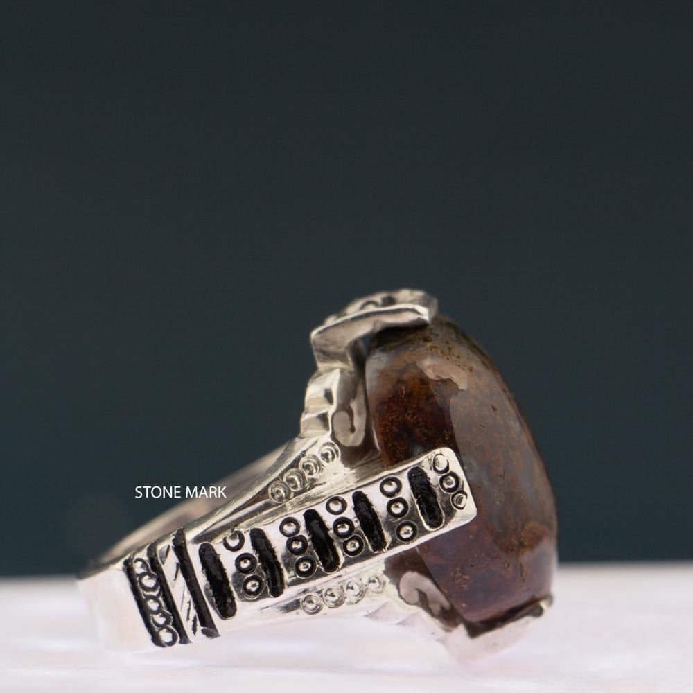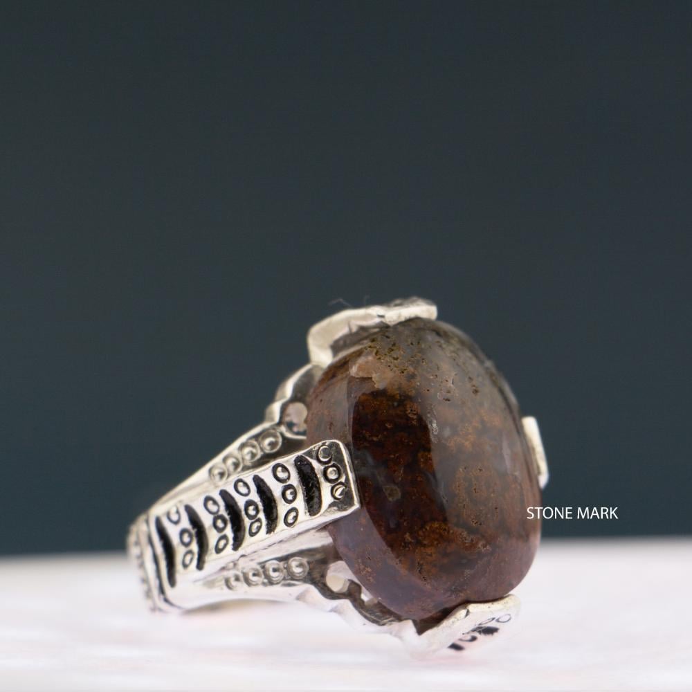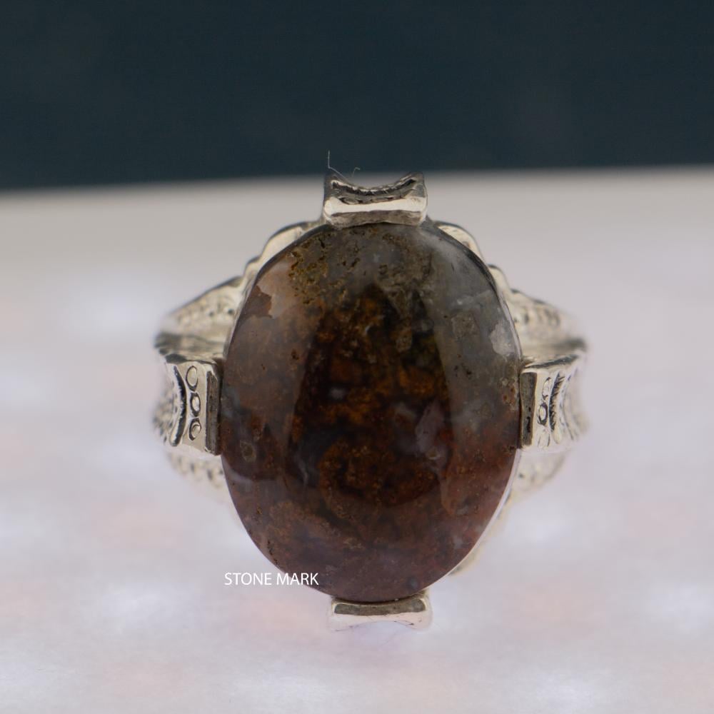 الحجر: عقيق طحلبي (ورد الربيع)عيار الفضة: 950المقاس: 20 عربي - 9 أمريكيالصائغ: الشريفوزن الخاتم: 21 جرام